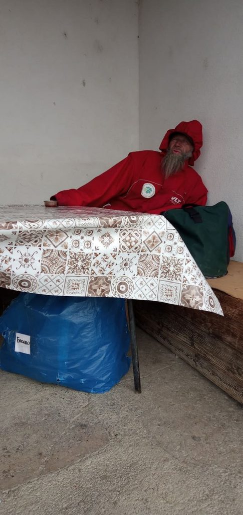 Човекот на фотографијата се вика Јован. Се наоѓа пред продавницата во Оровник- Охрид каде преноќува веќе втор ден. Како што ни кажа има 63 години, 36 години работен стаж и уште една година до пензија. Но подолго време е без дом, преживува по улици. Ни рече дека некој му ветил дека ќе му плаќа кирија до месец мај, ама досега не нашол некој кој се согласил да му издаде соба, сите го одбивале. Па ако има некој кој би сакал да му изнајми соба( во Охрид, можеби и Струга) или познавате некого кој би го сторил тоа, известете ме. Би ве замолила барем да споделите, доколку сакате. Ви благодарам.