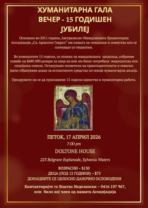 Австралиско-македонската хуманитарна асоцијација „Св. Архангел Гаврил“ е жив доказ дека македонското срце чука силно, без разлика на тоа каде се наоѓаме во светот. Со години наназад, тие несебично подаваат рака на оние кои се соочуваат со најтешките животни предизвици, покажувајќи дека хуманоста нема граници.